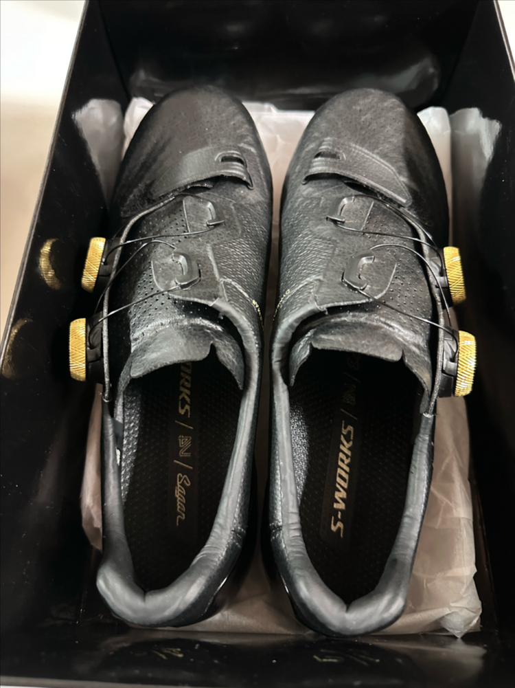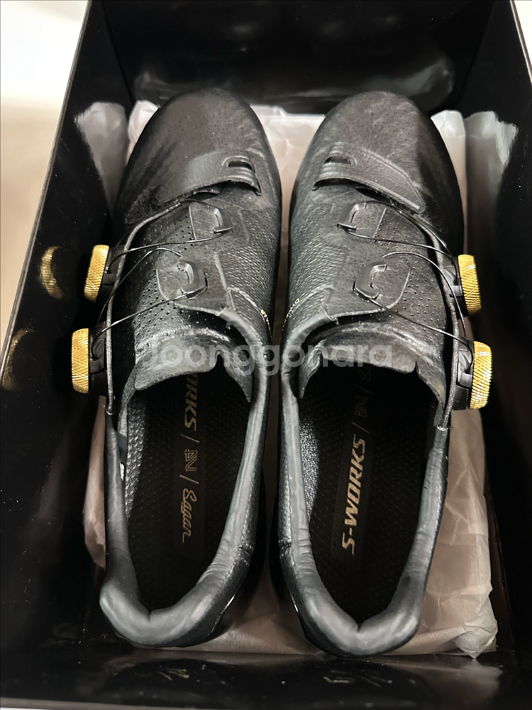 개인정보(거래정보)를 주고받는 행위는 사기에 노출될 수 있으므로 즉시 중고나라로 신고해 주세요에스웍스7 피터사간 블랙, 골드 더블 다이얼 사이즈 275 (43) 장착 클릿 제외 블랙 색상의 스페셜라이즈드 에스웍스7 클릿 슈즈입니다. 피터 사간 에디션 모델이며, 다이얼로 조이는 방식입니다. 긁힘 하자부분 마지막 사진 참고부탁드려요~ 문의 없으시면 바로 안전결제해주시면 됩니다!