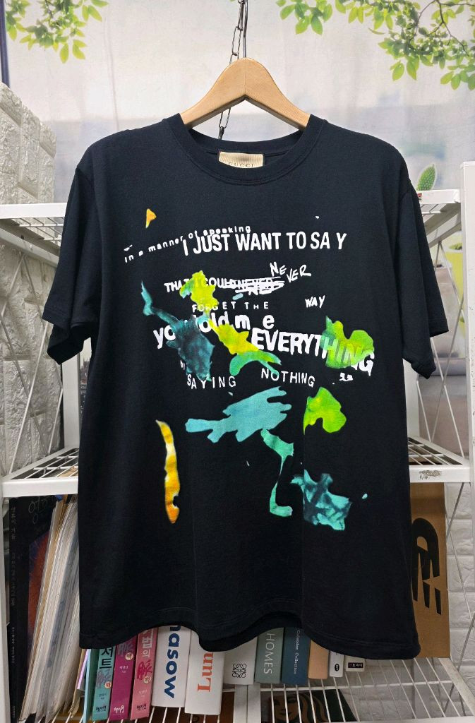 개인정보(거래정보)를 주고받는 행위는 사기에 노출될 수 있으므로 즉시 중고나라로 신고해 주세요구찌 남성 반팔티셔츠 블랙색상 그래픽 프린터 구찌코리아 택 정품 made in italy M175/96A 사이즈100~슬림105 가슴반품56 기장68 드라이한상태 상태양호 ※ 문의. 무료배송 : O1O-22O7-5656 ※