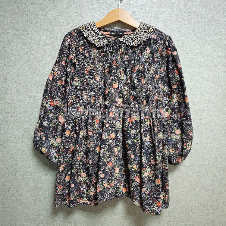 봉주르 다이어리 블랙꽃 코듀로이 블라우스 10y 상태 좋아서 따로 고지할 점 없어보여요 약간 톡톡한 재질입니다 구매 후 환불 불가
