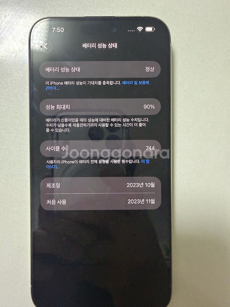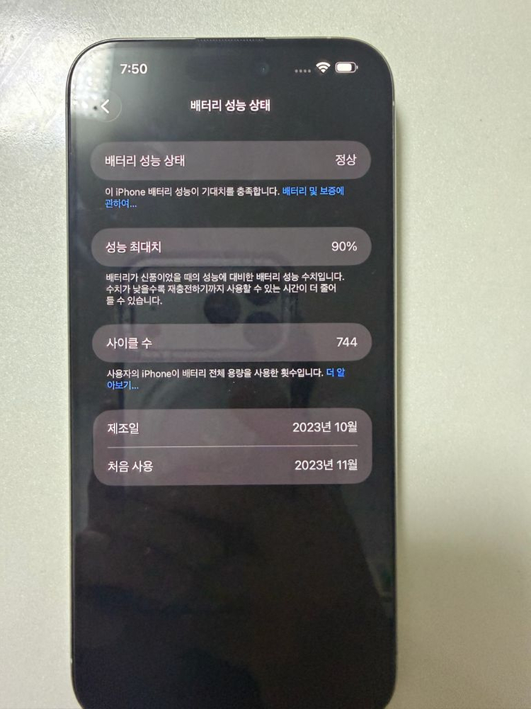 아이폰 15프로 맥스 256기가입니다 전면에 강화유리붙어있고 카메라에도 강화유리 붙어있습니다 구매하시면 오하이 강화유리 한개 남은거 같이 드려요 킷트도 같이있어서 붙이기 쉬워요 배터리성능은 90프로입니다