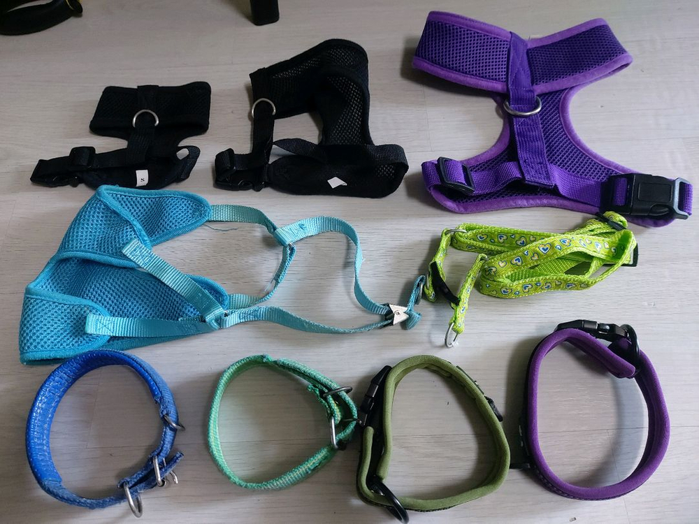 강아지 옷, 하네스, 목줄 등 잡다 세트 사진에 나온 것 다 드립니다. 사용삼 있는 중고 이며 소형. 중형 말티즈가 쓴 것 입니다. 강아지가 죽은 것은 아니고 안 쓰고 남은 것 들만 골라 파는 것이라 부정타고 그런 물건은 아닙니다.