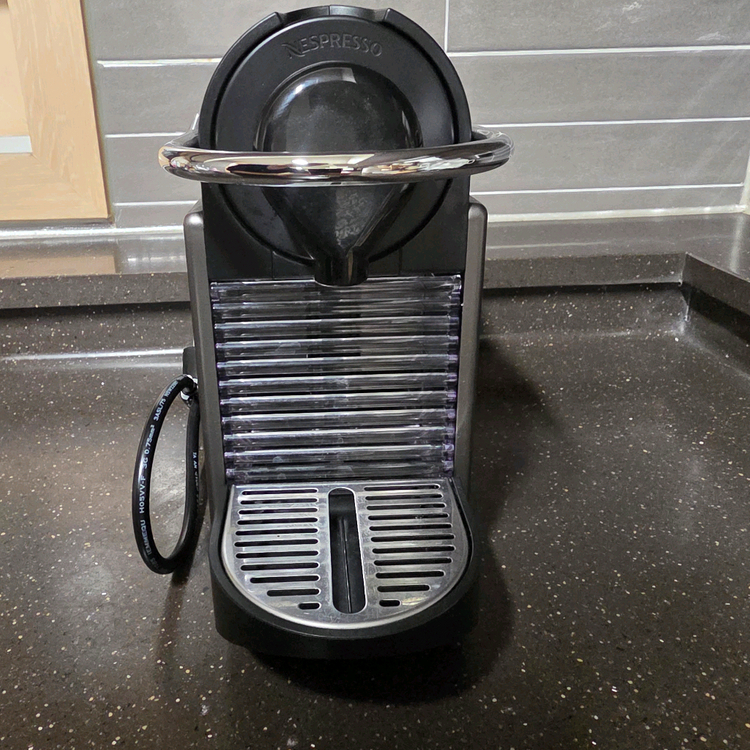 블랙 색상 네스프레소 픽시 커피 머신입니다. 집에서 커피를 잘 안 마시게 되어 판매합니다. 캡슐 수납 공간도 분리 가능합니다. 별도 문의 없으시면 바로 안전결제 부탁드려요!