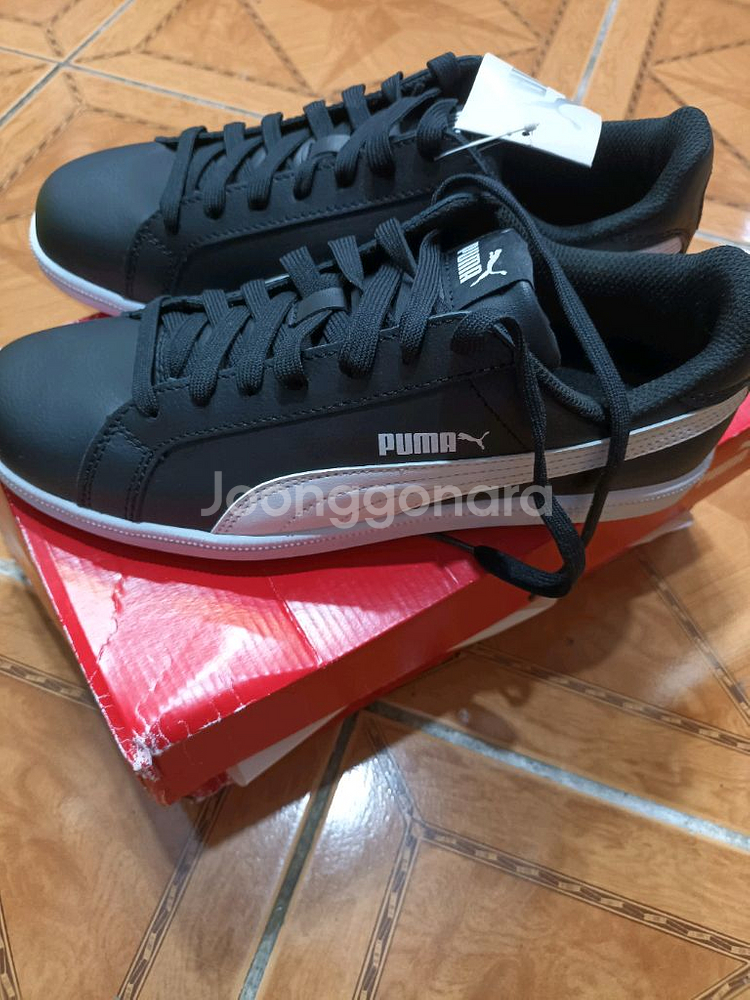 푸마 스매쉬 L 블랙-화이트, 260 사이즈 새상품입니다 깔끔한 디자인으로 어디든 잘 어울려요! 박스도 같이 드려요~