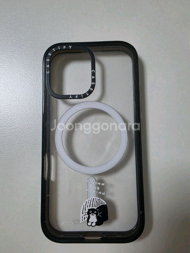 아이폰16 케이스티파이 모대리고양이 케이스입니다. 투명 케이스에 검정색 범퍼가 씌워져 있고 생활기스정도 있습니다 맥세이프 링도 부착되어있습니다. 추가 문의 없으시면 안전결제로 바로 구매 가능하세요!