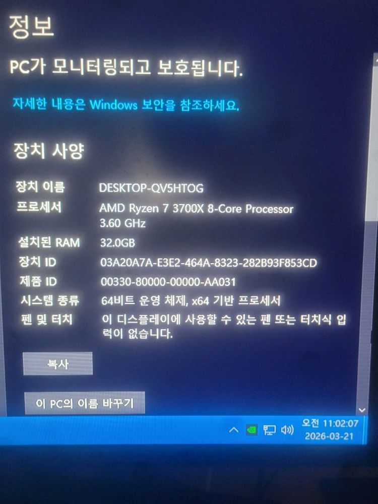 개인정보(거래정보)를 주고받는 행위는 사기에 노출될 수 있으므로 즉시 중고나라로 신고해 주세요라이젠7 3700x 2070super 32gb 게임하기도 좋고 서든어택하시는분은 최적화 되어있어서 바로사용하셔도 좋습니다
