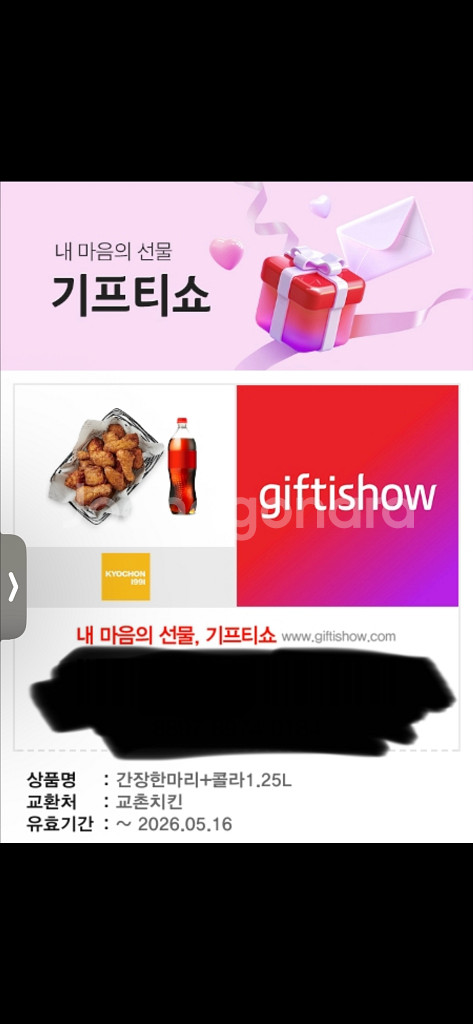 교촌치킨 간장치킨+콜라1.25 기프티콘상품권