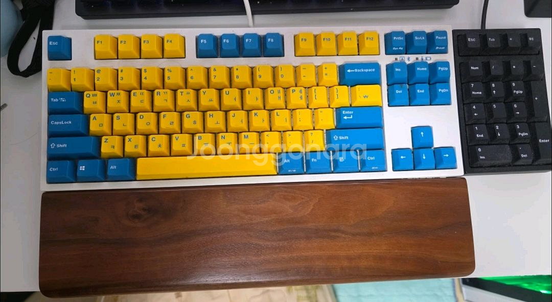 텐키리스 키보드 750 + 텐키 키패드 210 둘 다 저소음 저적축입니다. 디자인은 750 스웨디쉬, 210 블랙이고요. 750은 블루투스 기능도 있고, 트리와 원목 팜레스트 보조로 사무실에서 조용하게 쓰기 좋아요. (구매 후 공식 AS센터에서 주변보다 소음 튀는 곳 조치 받아서 새제품보다 더 조용합니다.) 사용기간은 1년 넘었고, 하자없이 깨끗합니다. 구매가 기준으로 24만원 상당이고, 제품 박스도 같이 드려요.