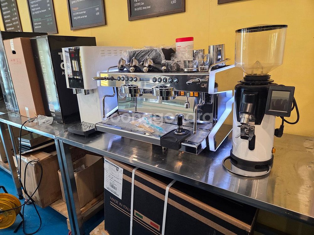 사진 넘겨 보시면 오버홀 사진 첨부 되어 있습니다 교육용 사용 원두 총 10k 정도 도징으로 일반 카페대비 실사용 극히 적습니다 씨메 네오 커피머신 세트 +하나 전자동 디스펜서 +씨메 맥 전자동 그라인더 (75mm버) 올분해 완벽 오버홀 각종 오링류,3웨이,임펠라 펌프등 소모품 교체 완료 내외관 신품 수준 약 1년6개월 사용 급처분 판매 330만원 전국 배송 가능 인천 010-9139-7900