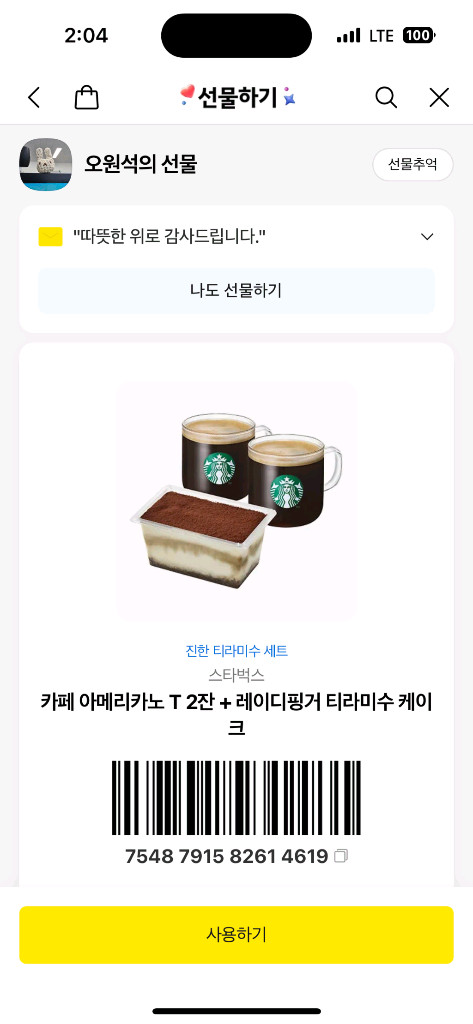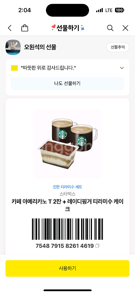 개인정보(거래정보)를 주고받는 행위는 사기에 노출될 수 있으므로 즉시 중고나라로 신고해 주세요스타벅스 기프티콘 구성은 사진과같이 아메리카노 2잔,레이디핑거 티라미수케이크 입니다 다른메뉴로 변경가능 정가16300원짜리 13000원에 팝니다 유효기간은 며칠전받은거라 아주 넉넉합니다