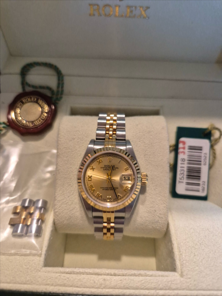 개인정보(거래정보)를 주고받는 행위는 사기에 노출될 수 있으므로 즉시 중고나라로 신고해 주세요롤렉스 레이디 데이저스트 콤비69173 98년식 판매합니다 구성은 풀구성(보증서있음) 상태는 기스없고 상태좋아요