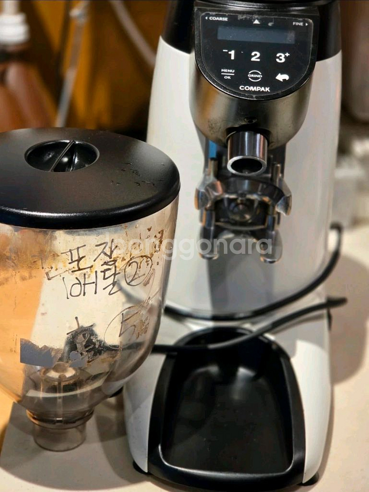 그라인더 교체로 쓰던 그라인더 판매합니다 날교체를 정기적으로 해왔기때문에 바로 쓰셔도 됩니다 호퍼가 지저분해서 싸게 내놨습니다 총 2대 있구요 네고가능합니다 콤팍 COMPAK E6 커피 그라인더입니다 220V, 60Hz, 420W 제조년월: 20년 7월 호퍼는 사용감이 좀 있습니다 그라인더 날이랑 콘덴서는 작년 12월에 교체했습니다