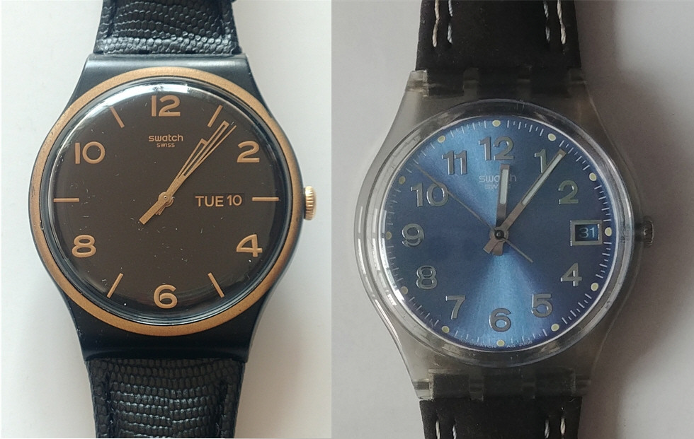 1.제품의 이름 : 스와치 GM415+스와치 골드 톤 시계 (남녀공용 스와치 시계 2개) 2.제품의 상태 및 상세 정보(흠집, 찌그럼짐, 기타 하자, 구성품 등) : 한동안 방치되었던 스와치시계 입니다 스와치 골드 톤 시계는 시계 케이스가 없습니다 ※약은 새로 구입하셔서 끼우셔야 합니다 (호환 배터리 원하시면 드릴 수 있음) 3.가격 : (택배비 포함 여부 미기입시 택배비 포함으로 간주) ●스와치 GM415와 스와치 골드 톤 시계 80,000원 판매 희망 (택배비 판매자 부담) 4.거래방식 : (직거래 or 택배) 우체국 택배 5.전달사항 : (연락처 및 기타) 문의는 댓글이나 채팅으로 주세요 직거래시 택배비 3,000원 제외한 금액에 드리고요 직거래는 7호선 삼산체육관역에서 가능합니다