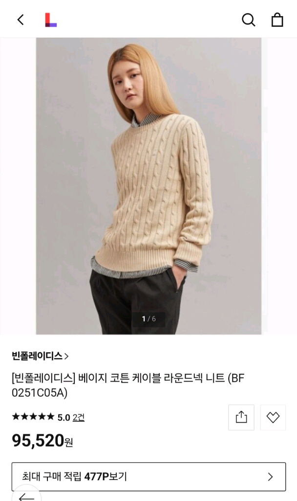 빈폴레이디스 니트 스몰 상태좋아요 약간여유있어요