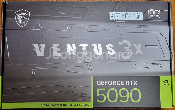 GeForce RTX 5090 OC 에디션 그래픽카드입니다. 박스 상태로 보관되어 있어요. 고성능 게이밍과 작업용으로 최적화된 제품입니다. 비닐도 안뜯은 새상품입니다. 안전결제 가능, 부산 직거래 가능
