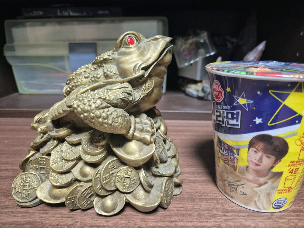 개인정보(거래정보)를 주고받는 행위는 사기에 노출될 수 있으므로 즉시 중고나라로 신고해 주세요떡뚜꺼비 황동 장식품이에요. 바닥에 동전 모양의 장식들이 쌓여있어서 정말 멋져요! 상태도 깨끗하고 좋습니다. 제질 동입니다