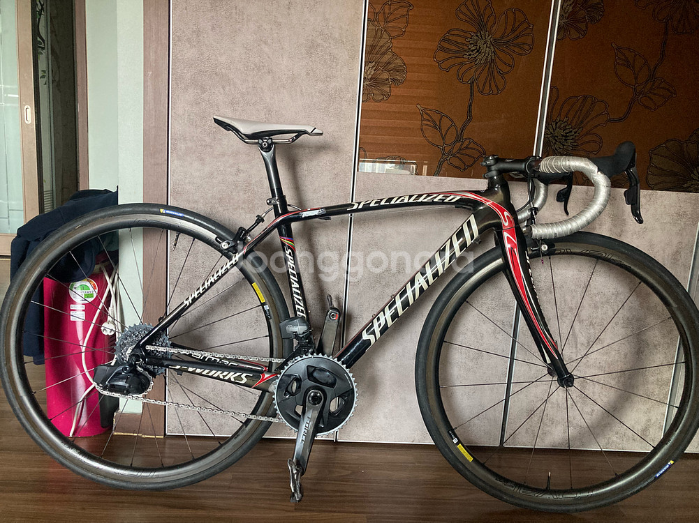 스페셜라이즈드 S-WORKS 로드 자전거 판매합니다 프레임 에스웍스 sl2 49사이즈 구동계 스램 포스 d1 전동 구동계 크랭크 165. 48-35 스프라켓 10-33 휠셋 로발 래피드clx32 브레이크 캄파 슈퍼 레코드 안장 프롤로그 디멘션 티록스 핸들 데다 400 핸들 스템 시마노 프로 90 프레임은 년식이 좀 있지만 구동계 휠셋 새로 교체 하였으며 무게 7키로 정도 나갑니다 비록 림브레이크이지만. 아직 평지 언덕에서 끝내주게 나갑니다 판매자 키 165 에 셋팅 되어 있습니다 스템 길이에 따라 150후반 170 초반 까지 셋팅 될꺼에요