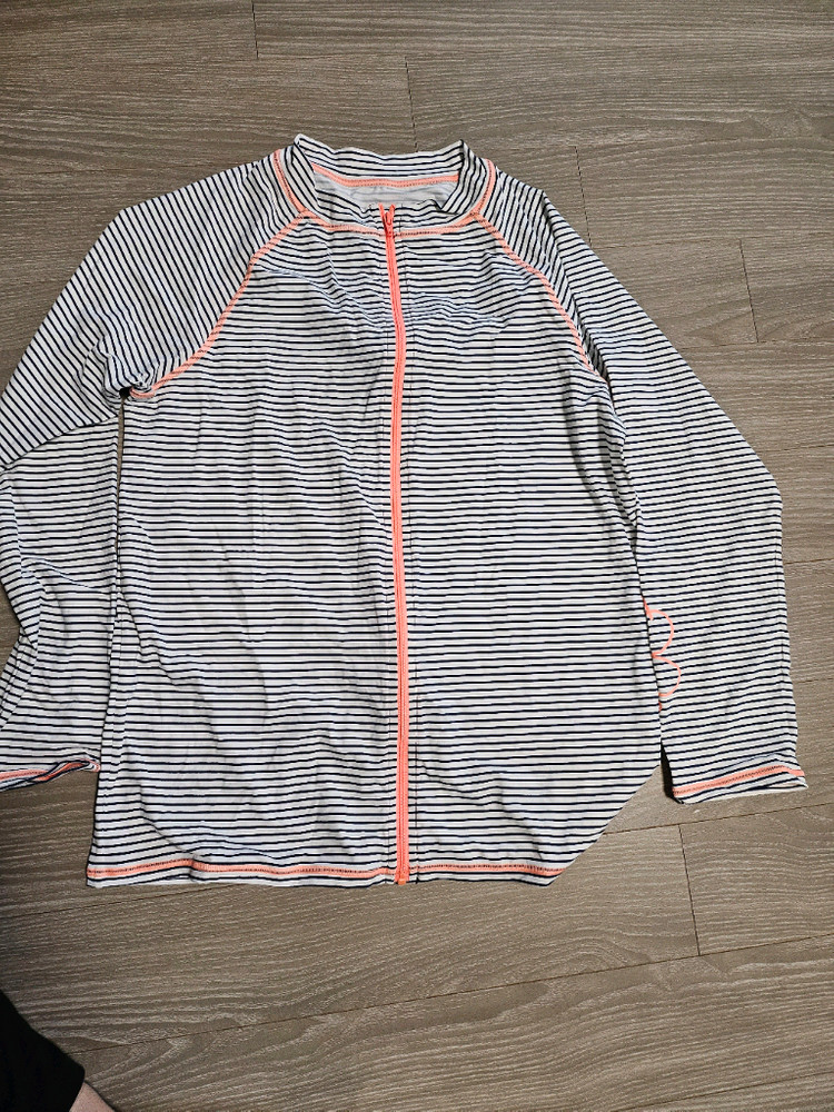 ELLE 스트라이프 집업 래쉬가드 상의 입니다 구매후 한번도 입지 못하고 보관만 했습니다 사이즈는 90-95이고, 가슴둘레 90cm입니다 재질은 폴리에스터 88%, 폴리우레탄 12%입니다 ☆ 예민하신 분 정중히 사양합니다 ☆ 중고거래 특성 환불 불가 ☆ 직거래 또는 비대면 거래 희망(평일만 거래 가능) ☆ 택배 요청시 우체국 택배 발송 가능(반값 택배X)