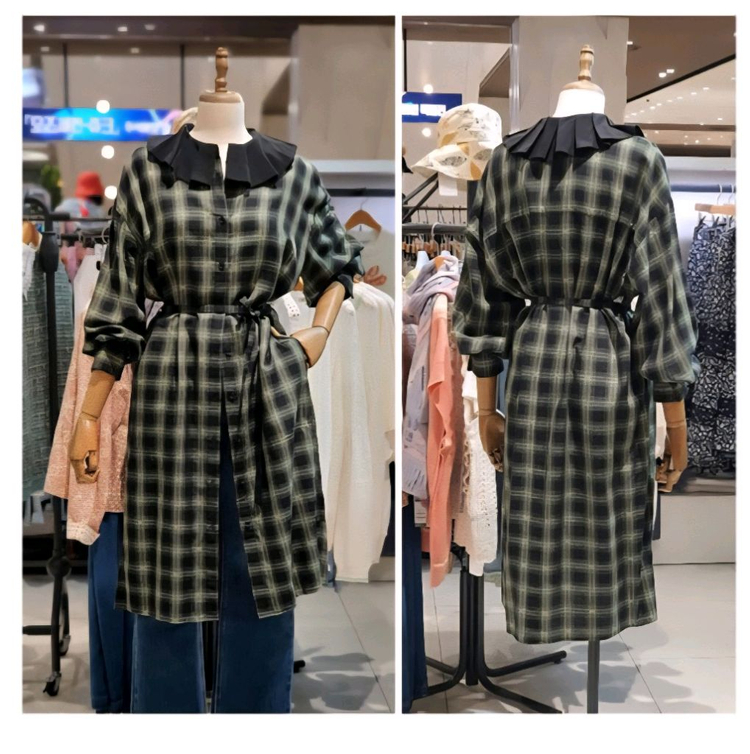 새옷인 써스데이아일랜드 롱 원피스입니다. S 사이즈이고, 독특한 플리츠 카라와 체크 패턴이 포인트입니다. 허리 스트랩으로 라인을 잡아줄 수 있습니다. 문의 없으시면 바로 안전결제해주시면 됩니다! 가슴 60 길이103~107 원피스,로브형 둘다가능 얇은원단이구요 금박무늬가있어서 실사는 조금더 화사한 느끼이에요 양쪽 호주머니 있어요 허리끈있어요, 안감없어요 옷방 정리중으로 새옷위주로 판매하고있어요 묶음배송가능 가격협의불가 (하자있는거 아닌 이상 반품 안되요 다시 되파시는건 관계없어요 ) 직장인이라서 퇴근후 나 다음날 점심때 편의점택배 대한통운 으로 발송해드립니다 사이즈는 실측참고 해주세요 교신X 상식에 벗어난 문의는 답변드리지 않습니다 모두 개인소장품 으로 기타사항 고지하고판매중 이구요 미처확인못한 보관중에생긴 기타마찰등에 의한 미세보플 미세까임등 있을수 있구요 반품불가하니 신중구매해 주세요 아주새거 백화점급 생각하시는분은 구매사양해요 착샷요청받지않아요