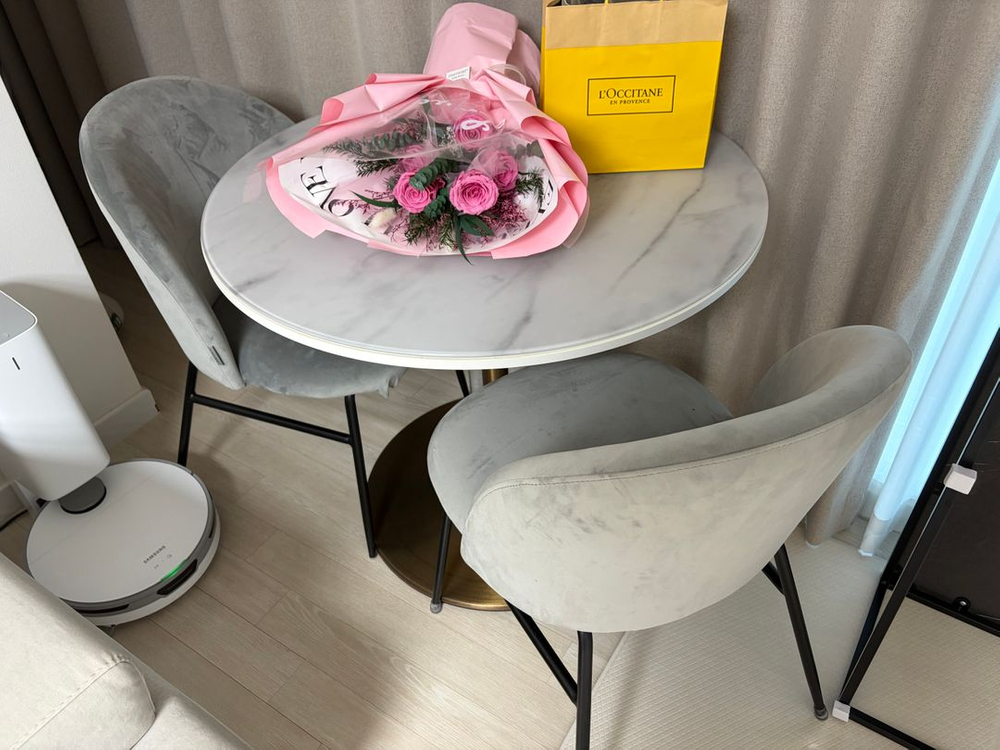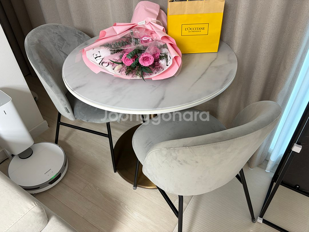 개인정보(거래정보)를 주고받는 행위는 사기에 노출될 수 있으므로 즉시 중고나라로 신고해 주세요깔끔한 화이트 컬러의 원형 테이블과 의자 4개로 구성된 세트예요. 사진에는 의자 2개지만 실제 의자 4개 구성입니다. 테이블이 가볍지 않아 안정감 있습니다. 구매후 4년간 사용하였지만 자주 사용하지 않았고, 생활기스 있는 상태입니다.