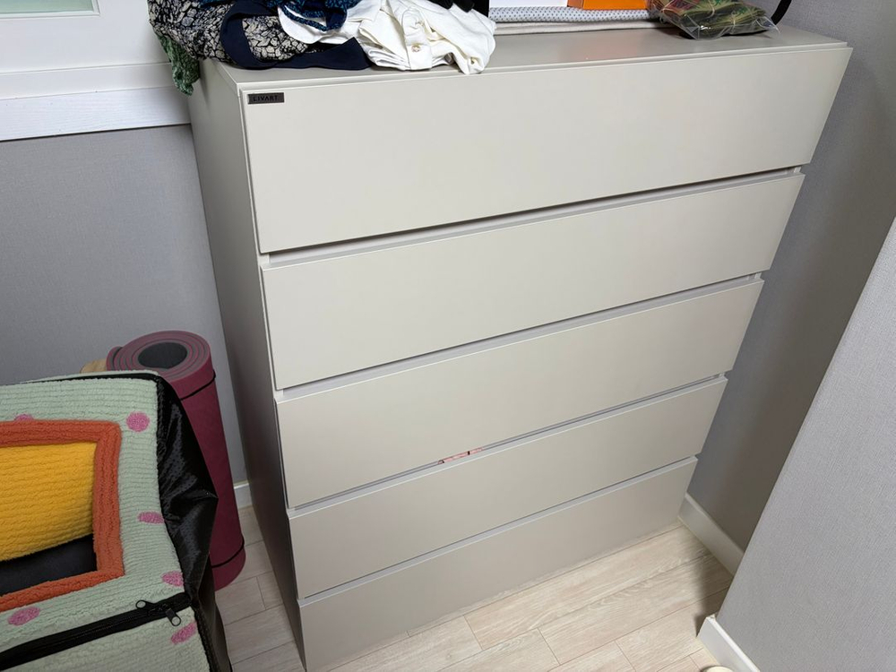 깔끔한 그레이 컬러의 리바트 다임 5단 서랍장이에요. 상태 양호하고 수납공간이 넉넉해서 실용적입니다. 깨끗하게 관리되어 바로 사용 가능해요. 21년 7월 구매했고 해외로 이사를 가게되어 처분합니다 ㅜㅜ 검색해보면 신품 576,000원 입니다. https://www.coupang.com/vp/products/8072323046?itemId=22728198198&src=1139000&spec=10799999&addtag=400&ctag=8072323046&lptag=AF1744153&itime=20260318123708&pageType=PRODUCT&pageValue=8072323046&wPcid=17738050280466169539594&wRef=blog.naver.com&wTime=20260318123708&redirect=landing&traceid=V0-101-3b06773d6d8d3bad&mcid=92d5a48d2f4f4fd3864854257c1548c9&campaignid=&clickBeacon=&imgsize=&pageid=&sig=&subid=&campaigntype=&puid=&ctime=&portal=&landing_exp=&placementid=&puidType=&contentcategory=&tsource=&deviceid=&contenttype=&token=&impressionid=&requestid=&contentkeyword=&offerId=&sfId=&subparam=