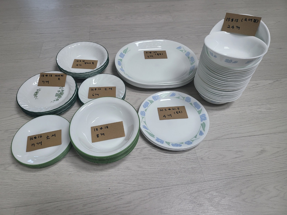 코렐 아이비 샐러드볼 접시 국그릇 대형접시 보관만 하고 있어 판매합니다. 깨끗하나 새 상품은 아니니 감안하시고 연락 주세요 국그릇 24 개당 5,000 블루접시 4 개당 7,000 블루 대접시6 개당 9,000 아이비 소 접7 개당 6,000 아이비 소서 접시7 개당 5,000 샐러드볼8 개당 7,000 샐러드볼4 개당 7,000 물결 소서 접시6 개당 5,000