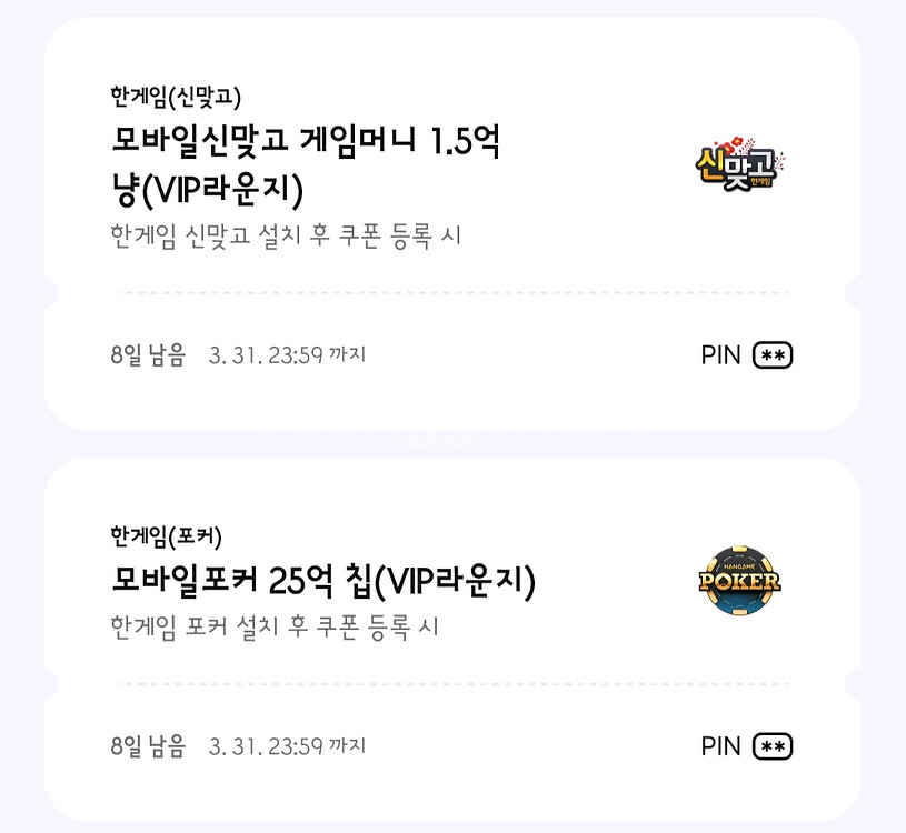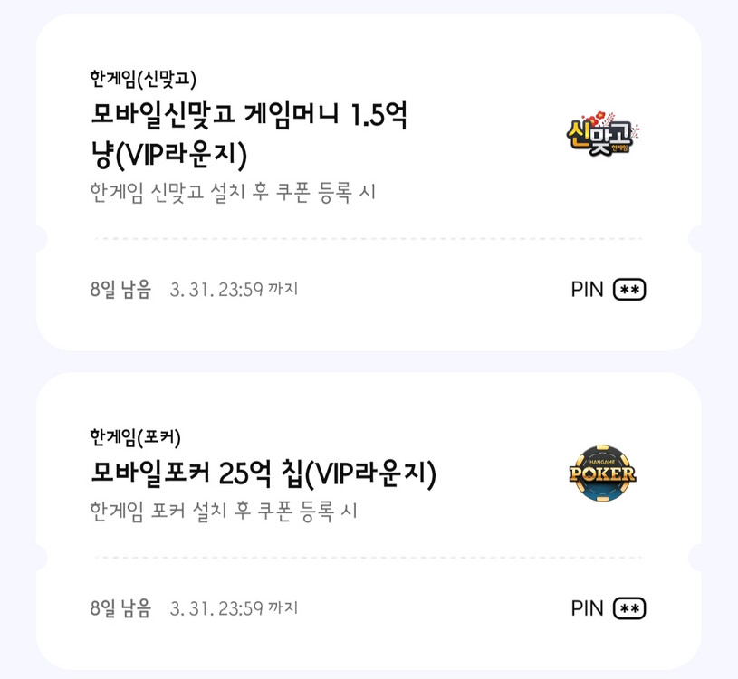포커 신맞고 쿠폰 일괄 ~3/31까지