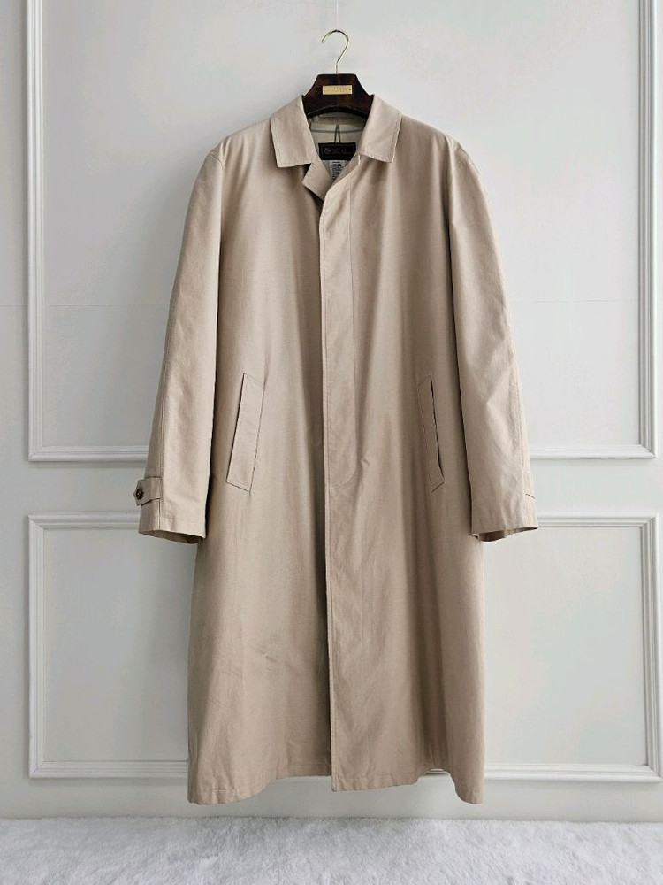 로로피아나 특유의 장인정신과 테크니컬 노하우가 집약된 레인메이트 트렌치코트입니다. 이 제품은 로로피아나만의 독점적인 스톰시스템 가공을 거친 원단으로 제작되어 비와 바람을 완벽하게 차단하면서도 우아한 실루엣과 고급스러운 질감을 그대로 유지합니다. 내부는 방수 테이핑 처리로 마감되어 있어 비, 눈, 바람 등 어떤 악천후 속에서도 착용자의 몸을 건조하고 따뜻하게 보호해줍니다. 단순한 트렌치코트가 아니라 기능성과 스타일 모두를 완성한 하이엔드 아우터라 할 수 있습니다. 어떤 트렌치코트를 선택해야 할지 고민된다면 이 한 벌로 모든 상황을 커버할 수 있을 만큼 완성도 높은 제품이라 자신 있게 추천드립니다. 실착 시 느껴지는 로로피아나 특유의 편안함과 고급스러움은 다른 브랜드와는 분명한 차별점이 있습니다. 사이즈 54 어깨 54 가슴단면 68 팔기장 69 총장 120 문의주세요