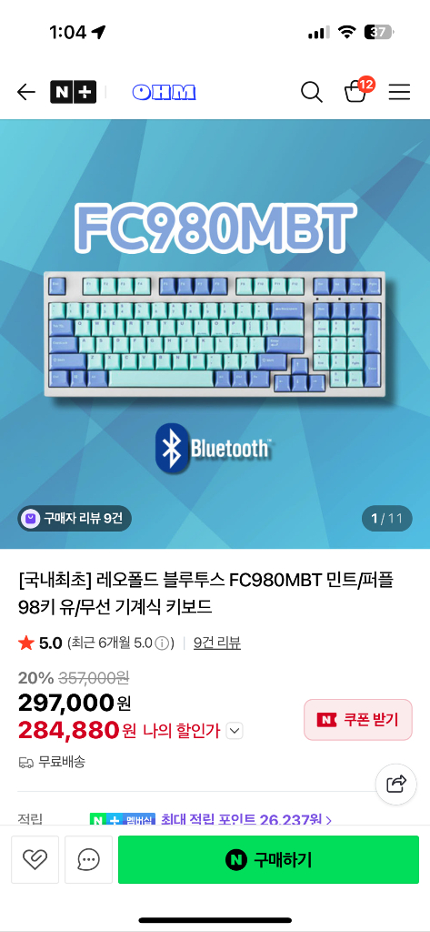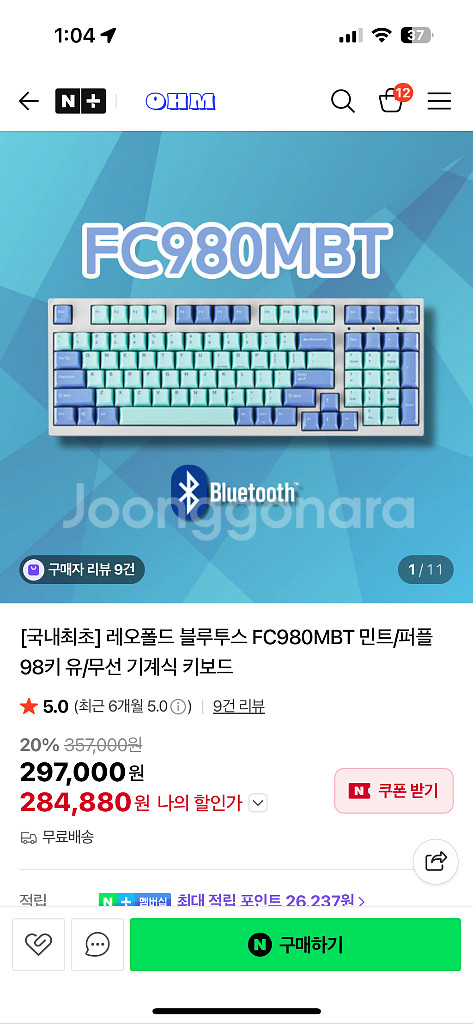 레오폴드 FC980M BT 민트 퍼플 적축 기계식 키보드 레오폴드 FC980MBT 민트/퍼플 색상 적축 키보드 풀박스 입니다 개봉 후 블루투스 연결 확인한 후 사용한 적 없는 새제품입니다 블루투스 기능이 있어서 무선으로도 사용 가능하고 유선으로도 사용 가능합니다 - 풀 배열 - 박스, 추가 키캡 포함