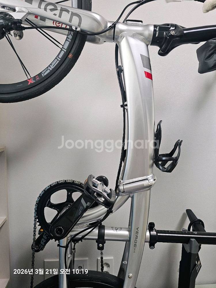 턴 버지 X11 (Tern Verge X11) - 신차급 미니벨로 팝니다. 2025년 10월 구매 후 문암생태공원에서 3~40km 주행 했습니다. 이후 날이 추워져서 보관하다가 판매하는 새상품급 입니다. (보관만 하다 보니 타이어 바람이 조금 빠져있습니다) 자세한 자전거 사진 더 필요하시면 보내드립니다. 충북 청주 직거래 희망하며 판매가격 310만원 (네고 불가능)