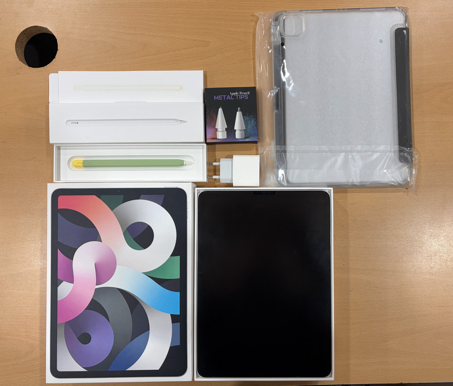 아이패드 에어 4세대 Wi-Fi 모델 + 애플펜슬 2세대 판매합니다 - 저장 공간은 256GB입니다 - 얇고 가벼워서 휴대성이 좋습니다 - 디스플레이는 선명하고 생생한 색상을 제공합니다 - 배터리 성능은 83%이며, 박스와 충전기 어뎁터, 애플펜슬 팁도 함께 드립니다! 케이스도 새것 같이 드립니다! 사진 보시다시피 상태도 매우 좋으며 성능도 좋습니다! 완전 풀박이구요 추가사진 필요하시면 문의해보세요 ㅎㅎ 초기화 해놨습니다☺️