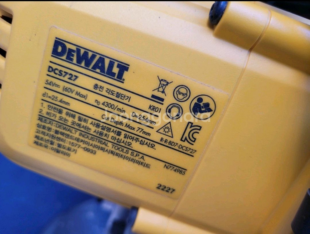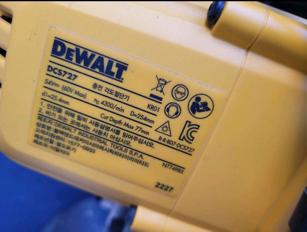 디월트 10인치 각도절단기 dcs727 판매합니다 서브용으로 사용하던거라 2~3현장 사용하였습니다. 거의 보관만 하게되어 판매합니다. 디월트정품날(기존), 프레우드 신품날 모두 드립니다. 하부에 장착되어 있는 각도절단기 브라켓은 별도입니다. 중고제품 특성상 반품, 환불 불가이며, 이유있는 네고 가능합니다.