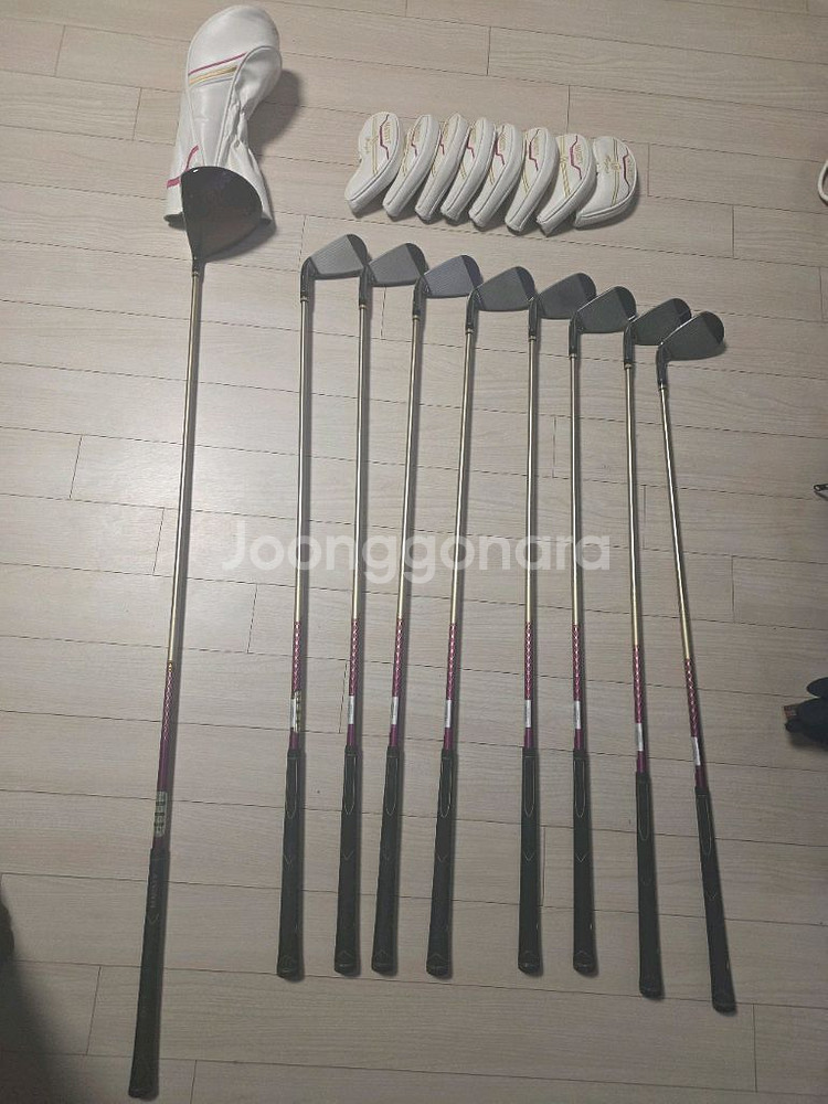마제스티 Royale 여성 골프채 풀세트(정품)입니다 드라이버, 우드(5번),아이언, 골프백 모두 포함되어 있습니다 사진에서 보시는 것처럼 상태는 양호합니다 가볍고 다루기 쉬워서 여성 골퍼에게 적합합니다 스티커붙은사진은 처음구매했을때 찍어둔겁니다 3년 주로 연습장에서 사용했습니다 드라이버는 찍힌부분 두군데있구요 주로 7번아이언만 사용해서 그외 다른건 다른아이언은 깨끗한편입니다(얼마전 비닐뜯은것도있습니다) 기존에 잘없는 5번아이언 포함입니다