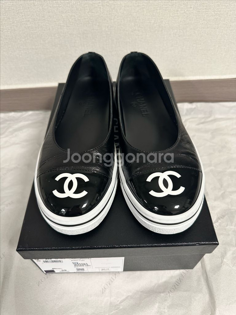 인플루언서분들 하나씩 꼭 가지고 있는 빈티지 느낌 가죽+고무 소재 단화입니다 귀한 템이예요 샤넬 26SS 26P 플랫슈즈 고무신 CC로고 단화 유광 페이턴트 블랙 화이트 G46593, 39사이즈(넉넉) 26.1월 국내백화점 구매, 구매가 1,833,000원 본품 제공 3회 착용, 넉넉한 사이즈로 엄청 편해요!! 슈즈가 너무 많아서 정리해요 개인 중고거래 반품 불가 판매수수료 관계로 안전결제 금액수정불가해요 수수료 제외시 150