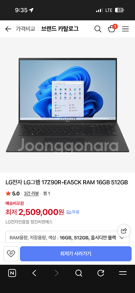 - LG전자 2023 그램17 17Z90R-EA5CK