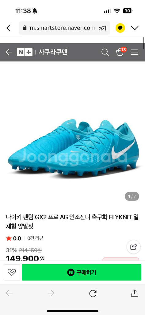 나이키 팬텀 GX 2 프로 AG 인조잔디 축구화 240
