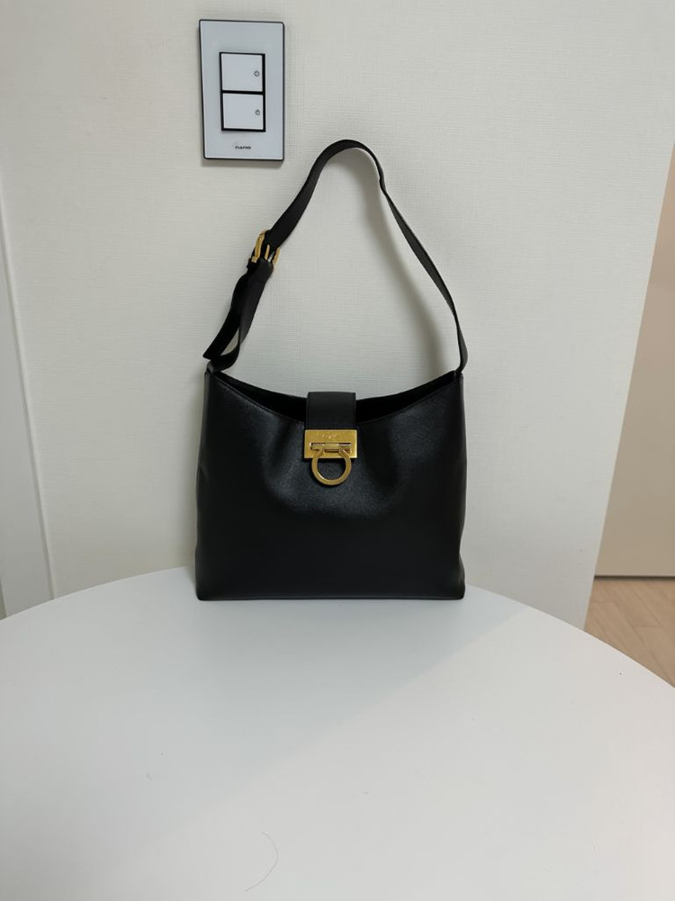 정품 페라가모 금장 트리폴리오 숄더백 입니다 어디에나 잘 어울리는 금장 간치니 로고 포인트와 블랙과 골드의 조화로 고급스럽고 세련된 디자인의 가방이에요 내부는 공간분할을 통해 효율적인 분리수납 가능해 실용적이고,버클로 스트랩 길이조절 가능합니다 생활사용감 외 흠없이 사용했어요 가로31 세로26