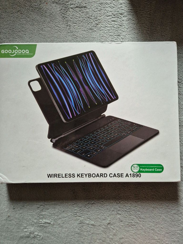 구조독 아이패드 프로 12.9인치용 무선 키보드 케이스 A1890 화이트 색상입니다 - 박스에 담겨 있으며 상태 좋습니다 - 백라이트 기능으로 어두운 곳에서도 편리하게 사용 가능합니다 - 한영 키보드 - 키보드 보호 커버 포함