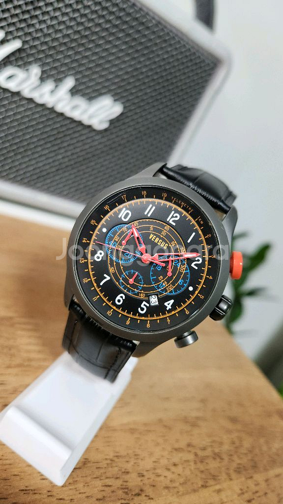 베르사체 정품 베르수스 멀티펑션 남성명품 시계입니다. VERSACE by VERSUS 소호 컬렉션 시계입니다. 손목시계/남성용/소재: 가죽/기압방수: 5ATM/아날로그/글라스: 미네랄/크로노그래프/날짜 표시/케이스: 43mm/날짜표시 중고장터서 중고 12만원에 파시는 분도 있네요. 이베이에서 170유로 = 29만원에 판매하는거 확인 했습니다. 스포티한 소호 컬렉션만의 디자인이 돋보이는 시계로 너무 이쁩니다. 밴드는 사제 밴드로 교체해 놓고 보관중입니다. 베터리 있습니다. 아쉽게도 크로노 기능은 작동이 되지 않네요. 24시간 표시,날짜는 정상 작동하고 있으며 착용하시는데는 전혀 지장없습니다. 시계뿐이라 헐값에 날립니다. 손목위에 포인트 주기 좋은 시계입니다. 이왕이면 베르사체 시계로 하세요~ 놓치지마세요!! .................................................. notice ! * 판매자의 물품보기 눌러 다른 제품도 봐주세요! * 사진은 직찍이며 어떠한 보정도 안합니다 * 실측 사이즈를 참고하세요. * 중고물품의 특성상 환불이 되지않으니 이점 양해바랍니다 !