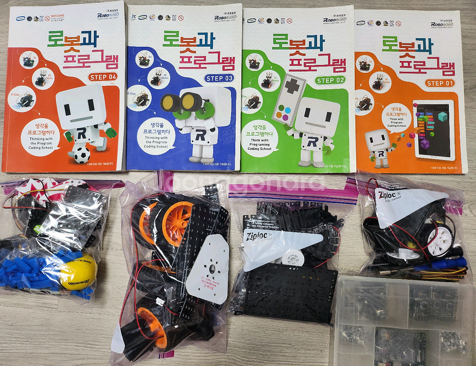 개인정보(거래정보)를 주고받는 행위는 사기에 노출될 수 있으므로 즉시 중고나라로 신고해 주세요[ROBOROBO] 신형로보로보 로봇과프로그램 1~4단계입니다 단계별로 정리되어 있습니다 부품 하나하나 검수했으며 누락없이 다 있습니다 주요부품 모터 센서 제어기 이상없이 작동합니다 상태양호합니다 전남에서 직거래 가능하고 이외지역 택배 거래이고 택배비 별도 4,000원 있습니다