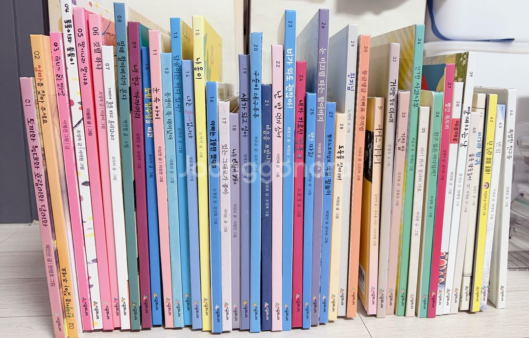 네버랜드 우리 걸작 그림책 44권 -깨끗하게 보았습니다.절반은 안본 것 같아요. -빛바램이 있는 책도 있고 완전히 펼쳐지는 책도 몇 권 있지만 깨끗한 편입니다. -책은 깨끗한 편이지만 중고이므로 겉표지나 책기둥에 미세 스크레치 찍힘이 있을수 있으니 참고해주세요. *교환 환불 불가합니다.