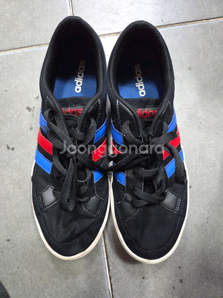 개인정보(거래정보)를 주고받는 행위는 사기에 노출될 수 있으므로 즉시 중고나라로 신고해 주세요아디다스 검정 스니커즈 270mm 판매합니다. 삼선은 파란색, 빨간색으로 포인트를 주었습니다. 사용감은 조금 있지만 상태는 좋아요