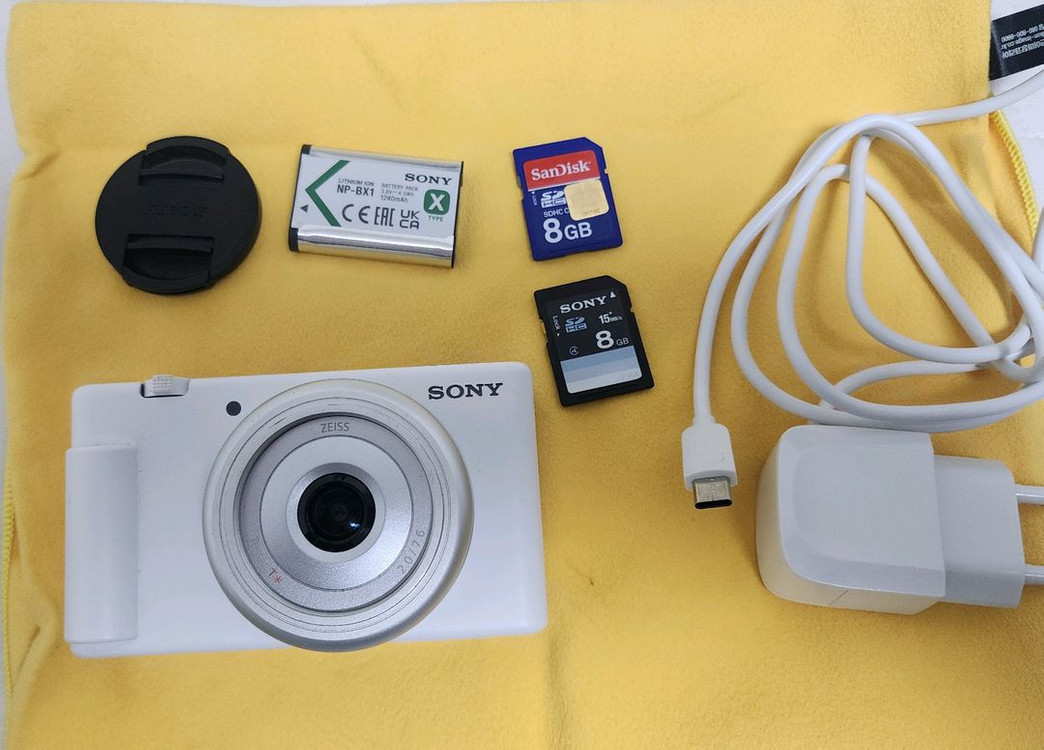 소니 ZV-1F 화이트 브이로그 카메라입니다. 구성품 카메라 본품/ 충전기/배터리 1/ 8G sd 카드 2ea 추가로 joby 고릴라포드 삼각대 구성입니다. 사용감 있습니다만 전반적으로 깨끗합니다. 사진 참고하세요 택배등은 뽁뽁이등 잘 포장해서 보내드리겠습니다 직거래는 서울 상암쪽입니다. 적당한거리는 조율가능합니다.