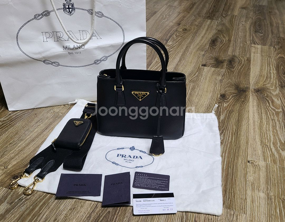 프라다 갤러리아 사피아노 스몰(미니) 1BA296 모델이고 당시 롯데백화점에서 360~370만원 정도 줬던 제품입니다. 현재 새 상품 기준 공홈, 백화점은 500만원 넘고 인터넷 최저가도 330만원 이상네요 사피아노 재질이라 고급스럽고 크로스끈 탈 부착 , 길이 조절 가능해서 크로스백, 숄더백 다 가능합니다. 크로스 스트랩에 미니파우치 작은 가방도 달려 있어 포인트 되고 이뻐요. 사이즈도 들고 다니시기 좋은 사이즈고 폭이 있어 나름 수납도 좋습니다:) 상태 또한 모서리 까짐도 없고 깨끗하니 상태 좋습니다. 구성품은 롯데백화점 개런티 보증 카드, 더스트백, 프라다 카드 등 있어요:) 찾아보시면 아시겠지만 기본 중고가만 150~170이상 하는 제품이에요. 좋은 가격에 올립니다.