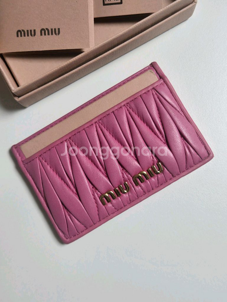 미우미우 특유의 감성이 제대로 살아있는 카드지갑입니다. 화사한 핑크 컬러에 금장 로고 조합이라 작지만 존재감 확실하고, 들었을 때 훨씬 고급스럽고 예쁜 제품이에요. 카드지갑은 오히려 이런 컬러감 있는 제품이 포인트라 더 예쁩니다. 무난한 컬러보다 분위기가 확실히 살아나고, 가방 안에서 꺼낼 때도 미우미우 특유의 사랑스러운 무드가 잘 느껴져요. 사진처럼 구성 보관되어 있고 정가 50만원대 제품이라 원가 대비 메리트 있게 올립니다.