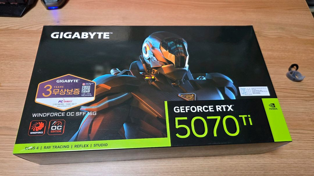 기가바이트 GeForce RTX 5070 Ti 그래픽카드 풀박스입니다. 단순 개봉 후 모셔두었던 제품이네요 4월 17일 이전까지 구매하시면 바하 레퀴엠 코드도 함께 드립니다 직거래, 택배 거래 둘 다 가능합니다