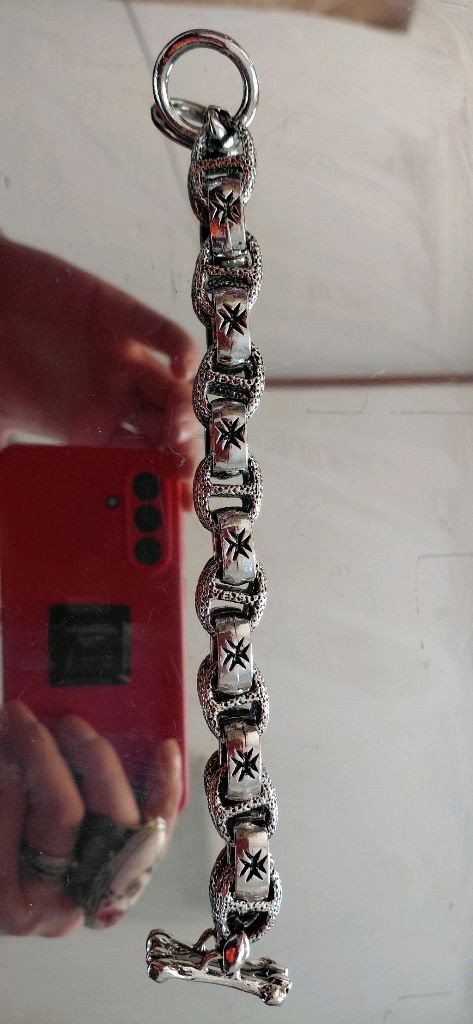 개인정보(거래정보)를 주고받는 행위는 사기에 노출될 수 있으므로 즉시 중고나라로 신고해 주세요십자가 패턴이 들어간 실버 체인 팔찌예요. 십자가 모티브가 포인트로 들어가 있어서 개성 있는 디자인이에요. 상태 양호하고 착용감도 좋습니다!
