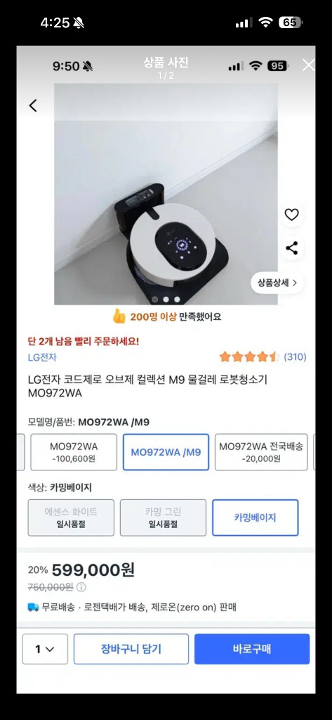 lg코드제로 오브제 m9 물걸레 로봇청소기