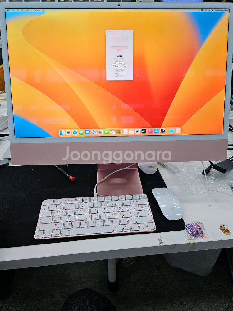2021년형 아이맥 M1 칩, 16GB 램, 1TB 저장 공간을 가진 24인치 제품입니다. 사진에서 보시는 것처럼 레드 색상이며, 애플 키보드와 애플 마우스, 정품 충전기 함께 드립니다. 박스는 없어요~.~ 왠만하면 직거래 희망하고,( 고양시 향동동 ) 택배거래시 배송 포장비 2만원 추가