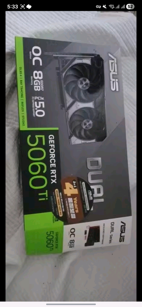 에이수스 듀얼 GeForce RTX 5060 Ti 그래픽카드 미개봉 새제품 국내정품 3+1년 보증 직거래 이대역 선호 택배거래 가능 거래장소 문의 환영 01026515420 문자 혹은 앱으로 연락주세요 급처