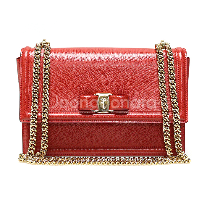 페라가모 레드 엠보스 카프스킨 금장 바라 지니 미디움 플랩 크로스백 / 21 G462 ㆍ원산지 : 이탈리아 ㆍ색상 : 레드 계열 ㆍ부속품 : 더스트 / 케이스 / 북렛 ㆍ사이즈 : 가로 24.5CM / 세로 16CM / 폭 6CM ㆍ소재 : 가죽 ㆍ특징 : - 프레스 락 플랩 오픈 형식, 내부 1군데 지퍼 포켓 - 레드 컬러의 카프스킨 소재, 금장 메탈 하드웨어 장식, 내부 가죽 소재 안감 - 금장 체인 숄더스트랩, 전면 포인트 금장 바라 보우 리본 장식 ㆍ상태 : 금장에 약간의 생활 스크래치, 모서리, 내부에 약간의 사용감이 있으나 전체적으로 깨끗하고 좋습니다. ㆍ매장가 : 1,490,000원 *중고명품 특성상 이미지에 보이지 않는 사용감과 조명 또는 해상도에 따라 색상이 실물과 차이가 있을 수 있습니다*